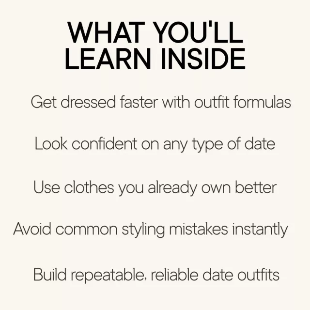 This guide is for anyone who wants to feel confident on dates without overthinking outfits or defaulting to the same safe choices. It’s ideal if you prefer pants, layers, or structured looks and want options beyond dresses. Unlike generic fashion advice, Date Night Style Without the Dress focuses on repeatable systems, real-life scenarios, and practical styling decisions that actually translate to everyday dating.